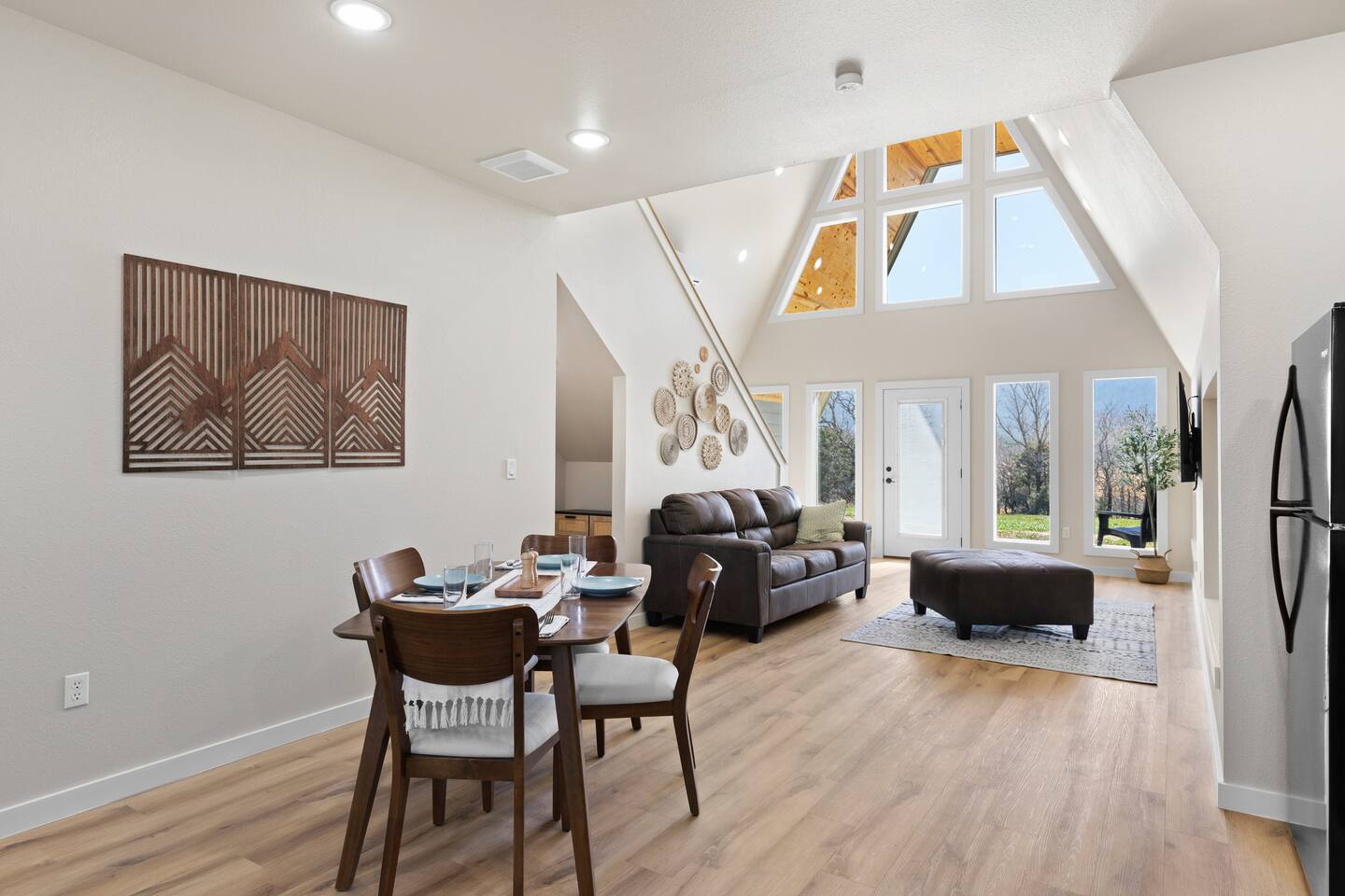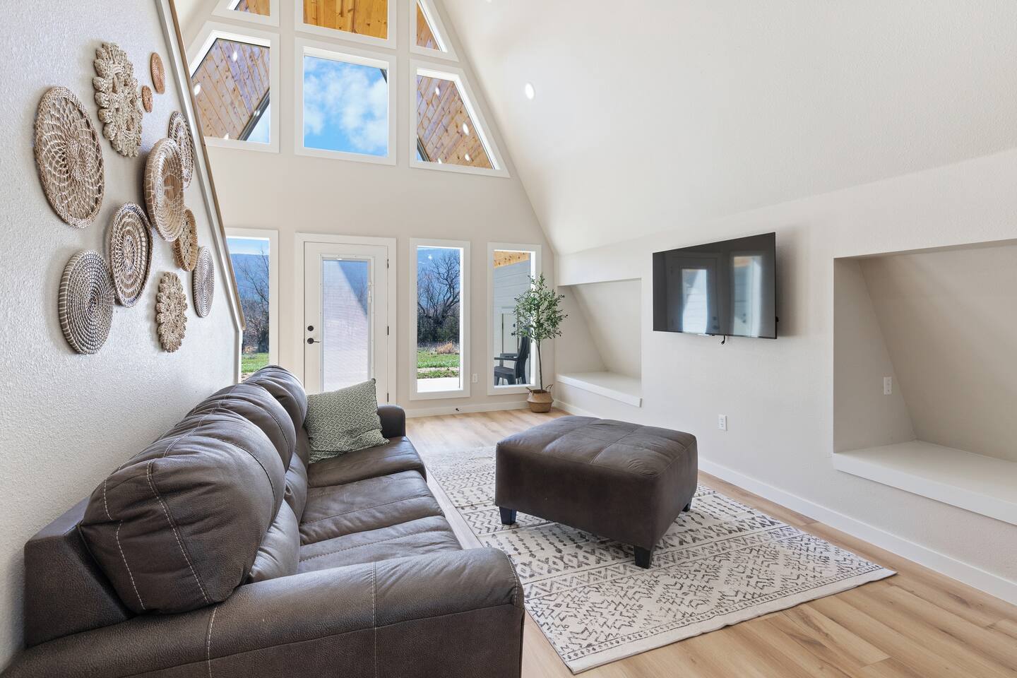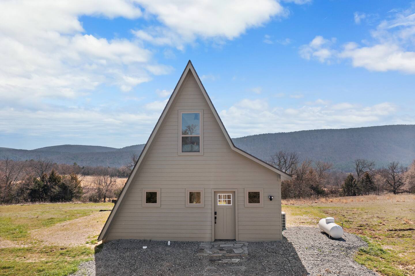 Discover our A-frame Hunters Moon, nestled amidst majestic mountains, offering unparalleled starry skies and vibrant fall colors along the Kiamichi mountains This boho retreat promises peace, with stunning views and cozy comforts. Ideal for nature lovers and those seeking serenity. Wake to breathtaking sunrises and unwind under a blanket of stars. Perfect for adventurers, couples, or families. Experience a unique escape, blending rustic charm with modern amenities for an unforgettable stay.