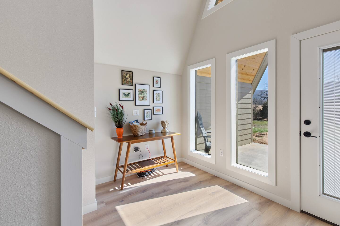 Welcome to our boho-chic A-frame, where rustic charm meets modern convenience, all framed by breathtaking mountain views. Our space is designed for relaxation and adventure, boasting an open-concept living area with vaulted ceilings and large windows that fill the room with natural light and the beauty of the surrounding nature.NOTE: There are two a-frames on the property. This a-frame is the one that sits the closest to the road. The living room invites you to unwind with a plush sofa with a queen sleeper, a selection of board games, and a smart TV for your entertainment. Step into our fully equipped kitchen, where you'll find everything you need to whip up a delicious meal, including modern appliances and a dining table perfect for four. Our A-frame features one lofted bedroom with a comfortable King-sized bed and soft linens, ensuring a restful night's sleep under the stars. The bathroom is stocked with all the toiletries and fluffy towels, offering a refreshing rain shower after a day of exploration. Outside, the covered patio provides the perfect setting for morning coffee or evening stargazing. Gather around the fire pit to roast marshmallows or just soak in the serene mountain views. There is also a camp-style charcoal grill as well. We want to ensure you have the best experience while staying with us, especially for those who appreciate the night sky. To keep light pollution to a minimum and enhance your stargazing opportunities, we've limited outdoor lighting to a motion-detected light covering the front door area. However, we understand the importance of visibility and safety, so we've provided flashlights and small LED lanterns for your convenience. Special amenities include high-speed Starlink Wi-Fi to keep you connected. Plus, enjoy the convenience of onsite parking, not only for your vehicle but if you have an ATV or a boat we have space to accommodate that as well. Since we are located in the heart of nature we don't allow pets. We do this for their safety and the safety of the surrounding animals that call the back forty their home. You might see deer, turkeys, and on rare occasions a bear or bald eagle. ( Note: We have only seen bear tracks once, just FYI) Along with nature comes some bugs as well. Back Forty A-Frames is more than just a place to stay—it's a peaceful retreat where you can truly connect with nature and each other. Bug spray and sunscreen are recommended. We provide a fully equipped kitchen (starter set of pots/pans, plates & cutlery, drinking glasses, cooking utensils, coffee maker, Coffee, standard appliances, salt/pepper/cooking oil, paper towels, foil) so be sure to pack your favorite foods/drinks. All bathroom toiletries are provided including bath towels, shampoo, conditioner, body wash, and toilet paper. Linens and bedding. Grills are charcoal, so bring a bag with you. There are piles of cleared wood that can be used in the firepit, please only use that wood or wood you have purchased in the firepits. Fires are not allowed if the county is in aa burn ban. NO PETS OR EXTRA PEOPLE OVER MAX ALLOWED **Additional supplies can be purchased at local supermarkets. Our cabins are for short-term rental use only therefore, if an item is not listed above, please assume it is not provided.